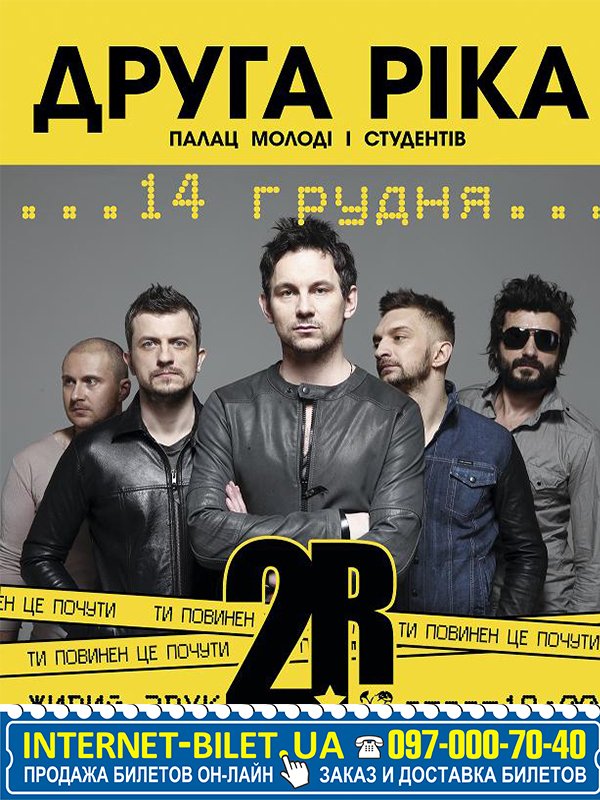 Друга ріка состоится 14 декабря 2013, 19:00, суббота в Дворец молодежи и студентов КТУ. С помощью сервиса internet-bilet.ua, Вы сможете с легкостью забронировать, заказать и купить билеты на интересующий Вас концерт, спектакль, оперу, балет, мастер-классы, спортивные и детские мероприятия, оплатив их самым удобным для Вас способом: через интернет банковской картой VISA/MasterCard, наличными или курьером, если сделаете заказ билета c доставкой.