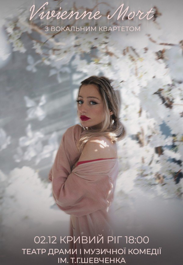 Vivienne Mort с вокальным квартетом состоится 2 декабря 2025, 18:00, вторник в Театр драмы и музыкальной комедии им. Тараса Шевченко. С помощью сервиса internet-bilet.ua, Вы сможете с легкостью забронировать, заказать и купить билеты на интересующий Вас концерт, спектакль, оперу, балет, мастер-классы, спортивные и детские мероприятия, оплатив их самым удобным для Вас способом: через интернет банковской картой VISA/MasterCard, наличными или курьером, если сделаете заказ билета c доставкой.